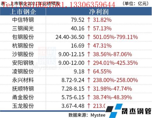 免責(zé)聲明:本網(wǎng)站(山東聊城晟杰無(wú)縫鋼管廠www.bfxzphq.cn)刊載的“2021年鋼企利潤(rùn)創(chuàng)新高,中信特鋼實(shí)現(xiàn)凈利近80億”等均源于網(wǎng)絡(luò),版權(quán)歸原作者所有,且僅代表原作者觀點(diǎn),本文所載信息僅供參考。轉(zhuǎn)載僅為學(xué)習(xí)與交流之目的,如無(wú)意中侵犯您的合法權(quán)益,請(qǐng)及時(shí)聯(lián)系刪除。本網(wǎng)站刊登此篇文章并不意味著本站贊同其觀點(diǎn)或證實(shí)其內(nèi)容的真實(shí)性,我們不對(duì)其科學(xué)性、嚴(yán)肅性等作任何形式的保證。如果侵犯了您的版權(quán),請(qǐng)盡快聯(lián)系我們予以撤銷,謝謝合作!