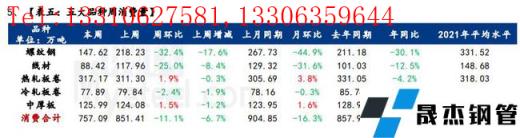 本周五大品種周消費量降幅突出,主要原因在于建材品種庫存增幅突出,但供應減量有限;而板材品種供應和庫存均未有明顯變化,因此整體消費受建材品種影響出現(xiàn)大幅下降。從下游消費來看,節(jié)前最后一周,全國大面積雨雪天氣來襲,以及員工停休放假,需求基本停滯。