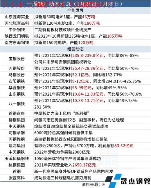 據(jù)不完全統(tǒng)計(jì),本周(1月24日-1月28日)有4家無(wú)縫厚壁鋼管廠家產(chǎn)能置換方案,具體如下: