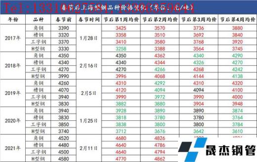 附:近五年上海型材春節(jié)均價(jià)走勢: