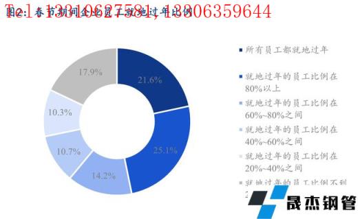 據(jù)調(diào)研,春節(jié)期間所有員工都放假停工的企業(yè)占調(diào)研樣本比例達(dá)到63.2%,放假停工的員工比例在80%以上的企業(yè)樣本占比達(dá)到20.9%,同時(shí)放假停工的員工比例不到20%的企業(yè)僅占比3.3%。