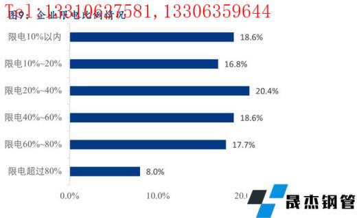 據(jù)調(diào)研,22.0%的樣本企業(yè)明確表示目前存在限電的情況,限電的比例較為平均,35.4%的樣本企業(yè)限電比例在20%以內(nèi),38.9%的樣本企業(yè)限電比例在20%-60%,25.7%的樣本企業(yè)限電比例在60%以上。
