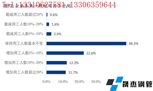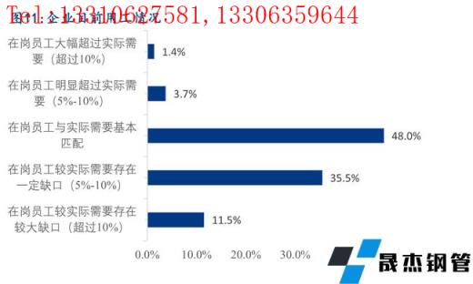 6、目前企業(yè)在崗員工人數(shù)與實(shí)際需求基本匹配的占比為48.0%,35.5%的企業(yè)目前在崗員工人數(shù)與實(shí)際需求相比存在少量的缺口,46.6%的企業(yè)在未來一段時(shí)間內(nèi)有增加用工人數(shù)的計(jì)劃,由此可見未來一段時(shí)間內(nèi)行業(yè)用工需求依然較大,僅僅只有5.1%的企業(yè)未在崗員工人數(shù)超過實(shí)際需求,預(yù)計(jì)未來一段時(shí)間會(huì)有少量的人員裁減計(jì)劃。