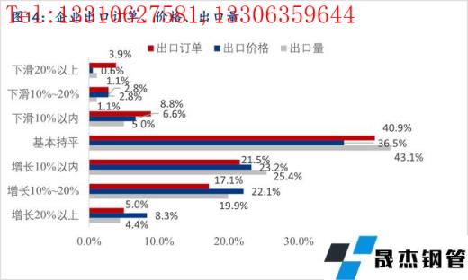 據(jù)調(diào)研,35.5%的樣本企業(yè)有出口業(yè)務(wù),出口業(yè)務(wù)比重大多集中在20%以內(nèi)。40.9%的企業(yè)出口訂單量較去年同期比基本持平,43.6%的企業(yè)出口訂單量同比有增長(zhǎng),15.5%的企業(yè)出口訂單同比有下降,主要是受全球疫情,以及中美貿(mào)易摩擦的影響。36.5%的企業(yè)出口價(jià)格較去年同期比基本持平,53.6%的企業(yè)出口價(jià)格同比有上漲,9.9%的企業(yè)出口價(jià)格同比出現(xiàn)下降。43.1%的企業(yè)出口量較去年同期比基本持平,49.7%的企業(yè)出口量同比有增長(zhǎng),主要是產(chǎn)品的類別和客戶都有增加,7.2%的企業(yè)出口量同比有所下滑,主要是受外幣貶值以及疫情影響下運(yùn)輸成本提高的個(gè)影響。