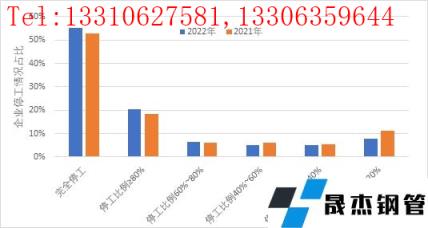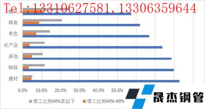 從不同行業(yè)的停工比例來看,鋼鐵、建材由于季節(jié)性生產(chǎn)和消費(fèi)特征明顯,停工比例達(dá)到80%的企業(yè)數(shù)量明顯高于其他行業(yè),且較去年相比,鋼鐵、建材行業(yè)停工比例達(dá)到80%及以上企業(yè)數(shù)量占比分別提高3.4和5.9個百分點(diǎn)。