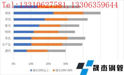 與去年同期對比來看,在經(jīng)濟(jì)下行壓力加大的情況下,調(diào)研樣本企業(yè)訂單仍然出現(xiàn)較為可觀的增長,說明國內(nèi)經(jīng)濟(jì)的韌性較強(qiáng)。但值得注意的是,訂單同比增加的企業(yè)數(shù)量占比較去年已經(jīng)出現(xiàn)下滑勢頭,尤其是增幅超過20%訂單的企業(yè)數(shù)量占比下滑4.2分百分點(diǎn)。從各行業(yè)情況來看,煤炭行業(yè)中50%的企業(yè)當(dāng)前訂單量同比都有所增長,其后依次為有色、能化、農(nóng)產(chǎn)品等行業(yè),均有35%以上的訂單量增長,說明今年整體需求仍比較旺盛。
