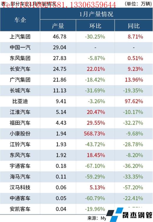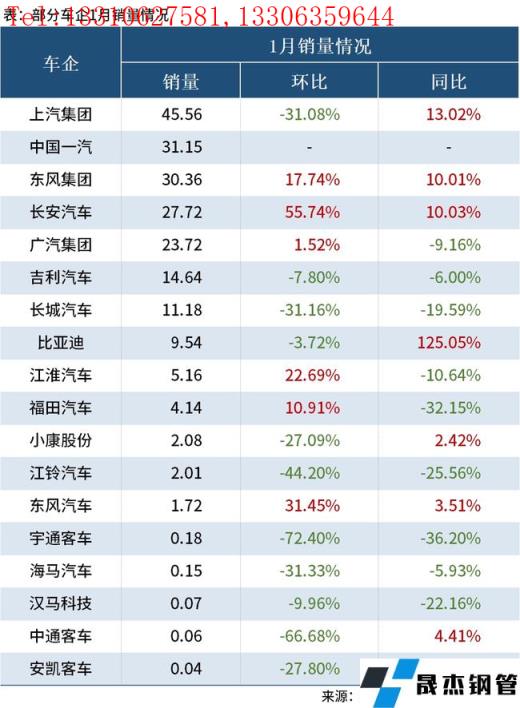 免責(zé)聲明:本網(wǎng)站(山東聊城晟杰無縫鋼管廠www.bfxzphq.cn)刊載的“1月我國汽車產(chǎn)銷降幅明顯,多數(shù)車企呈現(xiàn)雙位數(shù)下跌”等均源于網(wǎng)絡(luò),版權(quán)歸原作者所有,且僅代表原作者觀點,本文所載信息僅供參考。轉(zhuǎn)載僅為學(xué)習(xí)與交流之目的,如無意中侵犯您的合法權(quán)益,請及時聯(lián)系刪除。本網(wǎng)站刊登此篇文章并不意味著本站贊同其觀點或證實其內(nèi)容的真實性,我們不對其科學(xué)性、嚴肅性等作任何形式的保證。如果侵犯了您的版權(quán),請盡快聯(lián)系我們予以撤銷,謝謝合作!