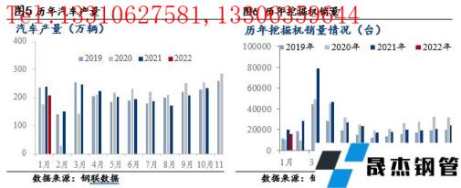 厚壁無縫鋼管方面,1月厚壁無縫鋼管進入消費淡季,但在厚壁無縫鋼管低庫存和經(jīng)濟穩(wěn)增長預(yù)期下,價格震蕩運行。1月有色金屬產(chǎn)量環(huán)比小幅下降。需求端有所分化,房地產(chǎn)行業(yè)信貸政策回暖,但1月戶外施工逐漸減少,以南方存量施工為主;汽車行業(yè)1月進入生產(chǎn)淡季,疊加春節(jié)影響,產(chǎn)量環(huán)比大幅下降;工程機械1月銷量降幅收窄,但國內(nèi)消費降幅繼續(xù)擴大,出口銷量超預(yù)期“穩(wěn)增長”;家電方面,1月份空調(diào)產(chǎn)量環(huán)比小幅增長。整體看,1月下游消費進入季節(jié)性淡季,但原材料供應(yīng)相對穩(wěn)定。