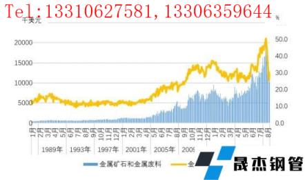 1988年至2021年澳大利亞金屬礦及金屬料出口情況圖