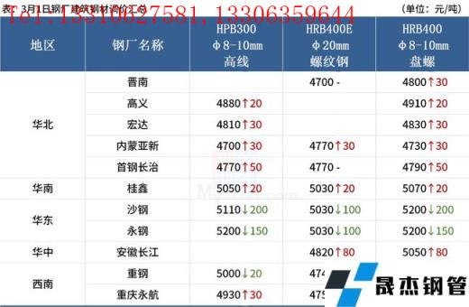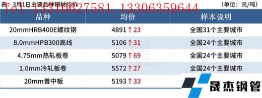 ◎ 首鋼京唐計劃于3月2日對一條1580mm熱軋生產(chǎn)線做檢修,為期11天,總影響產(chǎn)量約在11萬噸左右;并預(yù)計于3月3日對一座5500m3高爐進(jìn)行檢修至3月7日結(jié)束,為期5天左右,影響鐵水產(chǎn)量總計在6萬噸左右;此外還計劃于3月2日對酸連軋生產(chǎn)線做檢修,為期8天,總影響產(chǎn)量約在5萬噸左右。