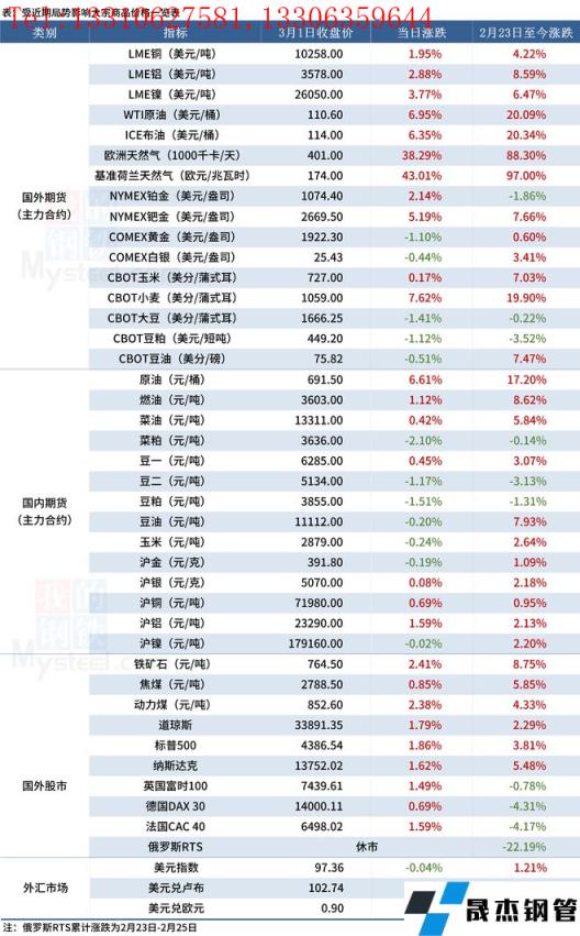 免責聲明:本網站(山東聊城晟杰無縫鋼管廠www.bfxzphq.cn)刊載的“受近期局勢影響大宗商品價格一覽表(3月2日)”等均源于網絡,版權歸原作者所有,且僅代表原作者觀點,本文所載信息僅供參考。轉載僅為學習與交流之目的,如無意中侵犯您的合法權益,請及時聯系刪除。本網站刊登此篇文章并不意味著本站贊同其觀點或證實其內容的真實性,我們不對其科學性、嚴肅性等作任何形式的保證。如果侵犯了您的版權,請盡快聯系我們予以撤銷,謝謝合作!