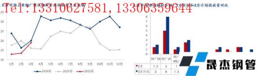盤線方面,據我網對京津冀區(qū)域盤線無縫厚壁鋼管廠家投放量調研,2月份盤線實際投放量19.6萬噸,環(huán)比增加2萬噸,3月投放量計劃20.4萬噸。1、河鋼樂鋼盤螺產線不定期生產,且以品種線為主,3月盤線計劃生產3萬噸;2、九江無縫厚壁鋼管廠家品種線生產為主,暫不計劃盤線;3、東華無縫厚壁鋼管廠家兩條盤螺產線在產,但以品種線生產為主,2月盤線計劃產量僅3萬噸。