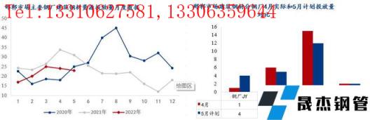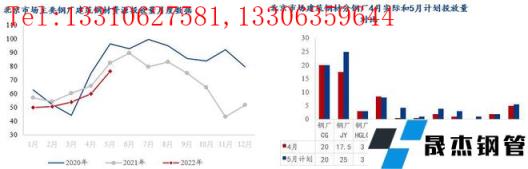 5月無縫厚壁鋼管廠家對京津冀區(qū)域投放量環(huán)比增加32.16萬噸,同比減少13.71萬噸。雖然無縫厚壁鋼管廠家生產(chǎn)成本高位,但產(chǎn)線復(fù)產(chǎn)的情況增加,具體來看:1、河鋼承鋼兩螺一線在產(chǎn),對京津冀投放量4月份22.5萬噸,5月份計(jì)劃22.5萬噸;2、河鋼樂鋼兩條螺紋產(chǎn)線在產(chǎn),4月唐山封城,資源主要對唐山本地投放,4月份合計(jì)13萬噸,5月份計(jì)劃投放13萬噸;3、敬業(yè)無縫厚壁鋼管廠家6條螺紋產(chǎn)線在產(chǎn),加上烏鋼資源流入,4月對京津冀投放量約43萬噸,5月計(jì)劃57.8萬噸;4、東華無縫厚壁鋼管廠家螺紋產(chǎn)線復(fù)產(chǎn),5月計(jì)劃投放10.19萬噸;5、鑫達(dá)一條螺紋產(chǎn)線不飽和生產(chǎn),4月京津冀僅投放6.5萬,5月份計(jì)劃投放10萬噸;6、4月建龍系無縫厚壁鋼管廠家對京津市場投放13.4萬噸左右,5月份計(jì)劃16萬噸左右,其中新?lián)徜撟疃唷?/p>