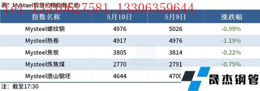 ◎5月10日焦炭市場偏弱運(yùn)行,部分無縫厚壁鋼管廠家開啟第二輪降價(jià),降幅為200元/噸,主流無縫厚壁鋼管廠家暫觀望為主。焦炭開工小幅微增,場內(nèi)基本零庫存運(yùn)行,即產(chǎn)即銷,多以積極出貨為主。詳情>>