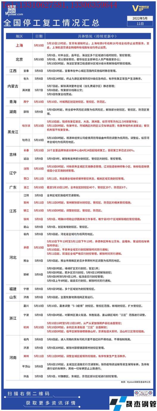 疫情影響丨全國停工復(fù)工情況匯總(5月10日)