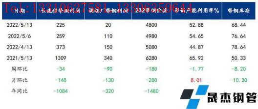 據(jù)調(diào)研結(jié)果顯示,5月11日調(diào)研結(jié)果顯示:本周唐山地區(qū)主流樣本無縫厚壁鋼管廠家平均鐵水不含稅成本為3665元/噸,平均鋼坯含稅成本 4721元/ 噸,周環(huán)比下調(diào)105元/噸,與5月11日當(dāng)前普方坯出廠價(jià)格 4640元/ 噸相比,無縫厚壁鋼管廠家平均毛利潤-81元/噸,周環(huán)比下調(diào)45元/噸。據(jù)調(diào)研,截止目前唐山地區(qū)樣本企業(yè)社會(huì)庫存為49.42萬噸,周環(huán)比增加3.34萬噸,月環(huán)比下降9.84萬噸,年同比下降12.44萬噸。從坯料角度看來,當(dāng)前鋼坯利潤為負(fù),且?guī)齑嫣幱谙鄬侠矸秶瑢r(jià)格或有一定支撐。