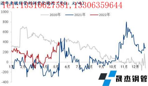 圖3:近年鍍鋅管利潤變化情況