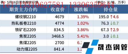 焦炭:5月16日,焦炭市場(chǎng)偏弱運(yùn)行,焦炭市場(chǎng)二輪降價(jià)落地,累計(jì)降幅為400元/噸。產(chǎn)地焦企開(kāi)工正常,生產(chǎn)良好,當(dāng)前焦企仍有盈利即產(chǎn)即銷,出貨順暢。無(wú)縫厚壁鋼管廠家方面,無(wú)縫厚壁鋼管廠家焦炭庫(kù)存呈現(xiàn)增勢(shì),現(xiàn)大多控制到貨節(jié)奏,按需采購(gòu)焦炭,考慮到無(wú)縫厚壁鋼管廠家成品出貨壓力較大且原料成本依然偏高,繼續(xù)打壓焦價(jià)意愿強(qiáng)烈。原料煤價(jià)格繼續(xù)回落,成本支撐較弱,預(yù)計(jì)短期內(nèi)焦炭市場(chǎng)偏弱運(yùn)行。