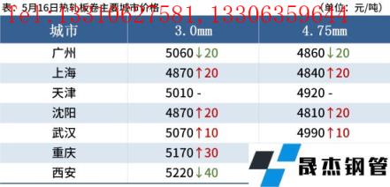 熱軋板卷:5月16日,全國(guó)24個(gè)主要城市4.75mm熱軋板卷均價(jià)5013元/噸,較上個(gè)交易日下跌8元/噸。受期貨盤面的影響午后價(jià)格小幅上揚(yáng),但成交普遍一般,看弱情緒仍在部分蔓延,商家多數(shù)仍謹(jǐn)慎操作,預(yù)計(jì)17日全國(guó)熱軋板卷價(jià)格將呈現(xiàn)小幅上漲的態(tài)勢(shì)。