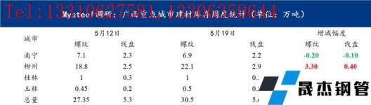 圖表一:廣西重點城市建材庫存周度統(tǒng)計