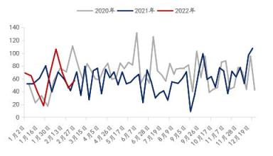 俄烏沖突以來(lái),球團(tuán)的供應(yīng)確實(shí)受到一定影響,但從海關(guān)進(jìn)口數(shù)據(jù)來(lái)看,今年1-2月份烏克蘭球團(tuán)月度進(jìn)口量也就是在20萬(wàn)噸附近,折合每周約5萬(wàn)噸;而從圖2中可以看出,2月中以來(lái)國(guó)產(chǎn)球團(tuán)產(chǎn)量持續(xù)增加,從38家球團(tuán)廠周度產(chǎn)量來(lái)看,球團(tuán)產(chǎn)量由111.05萬(wàn)噸增至147.28萬(wàn)噸(2022年2月21日與2022年4月初相比,下文時(shí)間點(diǎn)同上),114家無(wú)縫厚壁鋼管廠家?guī)齑嬷星驁F(tuán)產(chǎn)量由18.86萬(wàn)噸/天增至21.63萬(wàn)噸/天,折合周度產(chǎn)量每周增加33.39萬(wàn)噸,按照代表性折算約83.48萬(wàn)噸,足以彌補(bǔ)烏克蘭的影響。
