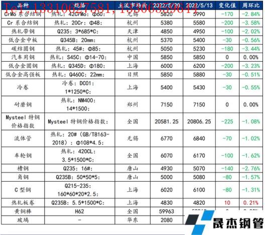截止2022年5月20日,各原材料當日即時價格以及價格周環(huán)比情況如下: