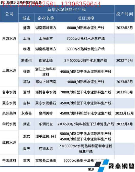 免責聲明:本網(wǎng)站(山東聊城晟杰無縫鋼管廠www.bfxzphq.cn)刊載的“:5月新增11條熟料水泥生產(chǎn)線,紅獅產(chǎn)能最大”等均源于網(wǎng)絡,版權歸原作者所有,且僅代表原作者觀點,本文所載信息僅供參考。轉載僅為學習與交流之目的,如無意中侵犯您的合法權益,請及時聯(lián)系刪除。本網(wǎng)站刊登此篇文章并不意味著本站贊同其觀點或證實其內(nèi)容的真實性,我們不對其科學性、嚴肅性等作任何形式的保證。如果侵犯了您的版權,請盡快聯(lián)系我們予以撤銷,謝謝合作!