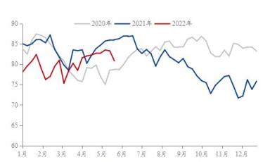 首先,供給端方面,據(jù)調(diào)研顯示,截至2022年5月27日,37家熱軋板卷生產(chǎn)企業(yè)中,無縫厚壁鋼管廠家產(chǎn)能利用率為80.87%,能夠從圖2可以觀察到2022年1-5月份,熱軋產(chǎn)能利用率是低于2021年同期水平,因此無縫厚壁鋼管廠家熱軋產(chǎn)量給到市場(chǎng)的供給壓力是在持續(xù)減弱,對(duì)于熱軋價(jià)格起到了一定的支撐作用。再來看下無縫厚壁鋼管廠家的冷軋產(chǎn)能利用率, 2020年與2021年冷軋產(chǎn)能利用率均值分別為77.96%與81.05%。截至2022年5月27日,29家冷軋板卷生產(chǎn)企業(yè)中,冷軋產(chǎn)能利用率為83.04%,從年同比數(shù)據(jù)對(duì)比之下,能夠反映出冷軋產(chǎn)能利用率已經(jīng)達(dá)到相對(duì)飽和狀態(tài)。