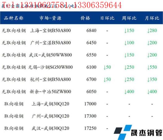 2022年5月30日湖南浙湘新材料科技有限公司出臺(tái)無取向硅鋼價(jià)格政策:0.5mm*1200mm*C規(guī)格材質(zhì)50W600無縫厚壁鋼管廠家指導(dǎo)價(jià)6420元/噸;50W800指導(dǎo)價(jià)6250元/噸;50W1300指導(dǎo)價(jià)6200元/噸,較上期持穩(wěn)。