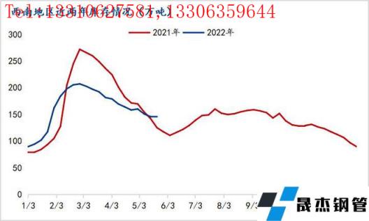 截至5月31日,西南地區(qū)建筑厚壁無縫鋼管社會庫存總量146.57萬噸,持續(xù)下降,較4月份減少11.58萬噸,降幅達7.32%,較去年同期增加21.63萬噸,增幅達17.31%,去庫速度有所放緩,庫存體量高于去年同期。主要原因是:1、西南地區(qū)與周邊區(qū)域價差逐步修復(fù),云貴區(qū)域無縫厚壁鋼管廠家減少對廣西、廣東、湖南等區(qū)域外資源投放;2、資金依舊是制約需求的主要因素,終端開工率未見明顯好轉(zhuǎn);3、西南區(qū)域逐步進入雨季,下游施工受限,市場成交受阻;4、川渝區(qū)域無縫厚壁鋼管廠家得益于電費、原料等優(yōu)勢,并未虧損,減產(chǎn)力度有限。五月份以來,西南區(qū)域供需雙弱,供需矛盾加大,市場去庫難度加大,庫存體量高于去年。