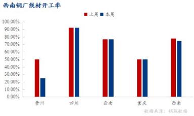 云南區(qū)域:控產延續(xù),產量小幅下降,線材產能利用率59.96%,環(huán)比下降0.49%;開工率76.92%,環(huán)比持平;周產量9.87萬噸,環(huán)比減少0.08萬噸。
