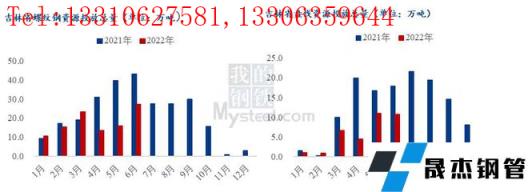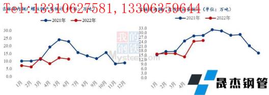 螺紋鋼方面,6月省內(nèi)及省外無縫厚壁鋼管廠家對吉林省合計投放量預計27.3萬噸,月環(huán)比增加11.5萬噸,月環(huán)比上升72.4%,年同比減少15.7萬噸,年同比下降36.6%。盤線方面,6月省內(nèi)及省外無縫厚壁鋼管廠家對吉林省合計投放量10.8萬噸,月環(huán)比減少0.3萬噸,月環(huán)比下降39.4%,年同比減少7萬噸,年同比下降39.4%。