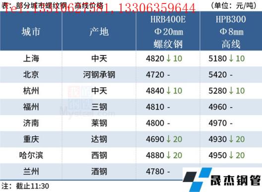 ◎杭州:10日早盤建材市場價格跌10,螺沙4850中4810西城4780浙江華宏4710江蘇鑌鑫4690長達抗震4780線材中天5280亞新5080聯(lián)鑫黃海盤螺5040。(單位:元/噸)