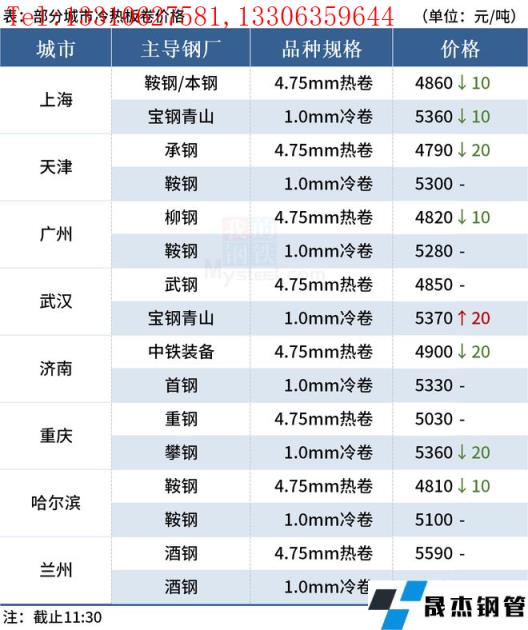 ◎上海:10日早盤熱卷市場價格跌10,現(xiàn)主流報價1500普4850-4870元/噸,1800普4930-4940元/噸;1500錳4990元/噸,1800報5050元/噸左右,2.75Q235B報4960-4980元/噸,2.75SPHC報5040元/噸左右。(單位:元/噸)