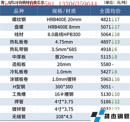 建筑厚壁無縫鋼管:6月10日,全國31個主要城市20mm三級抗震螺紋鋼均價4821元/噸,較上個交易日下跌17元/噸。短期來看,目前市場需求在雨季影響下依舊恢復(fù)不佳,同時本周產(chǎn)量繼續(xù)回升,高爐產(chǎn)能維持,供需仍然呈現(xiàn)雙弱格局。因此在下游需求難以回暖的狀態(tài)下,預(yù)計下周國內(nèi)建筑厚壁無縫鋼管價格或?qū)⒗^續(xù)窄幅震蕩為主。