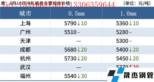 冷軋板卷:6月10日,全國24個主要城市1.0mm冷卷均價5427元/噸,較上個交易日下跌8元/噸。大部分市場商家信心不足心態(tài)偏悲觀仍然選擇調(diào)低報價以出貨回籠資金的操作為主。據(jù)商家反饋,當(dāng)前下游制造業(yè)接單狀況一般,觀望心態(tài)較重,按需采購為主,今日成交整體一般。綜合來看,故預(yù)計下周國內(nèi)冷軋板卷價格或?qū)⒄鹗幤踹\行。