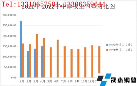 圖4 中厚板產(chǎn)品2021-2022年度進口量對比圖