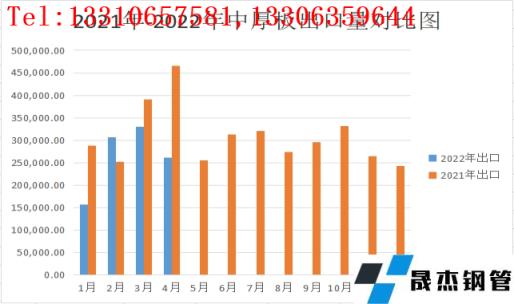 至于出口方面,據(jù)不完全統(tǒng)計,2022年4月份國內中板出口量約為26.09萬噸,環(huán)比3月份出口量下降約6.94萬余噸,與2021年同期相比出口量下降約20.51萬噸左右,隨著國外市場復工復產(chǎn)節(jié)奏加快,中厚板品種對于國內資源依賴性逐步降低。