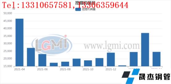 分行業(yè)來看,4月份國內挖掘機銷量為24534臺,環(huán)比3月份減少約12551臺。同比21年同期減少約22038臺。