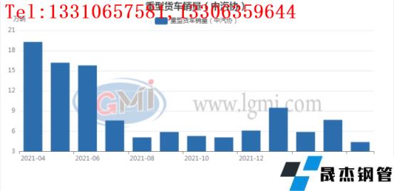 4月份國內重型貨車銷量為4.4萬輛,環(huán)比3月份減少3.3萬輛。同比21年同期減少約14.9萬輛。