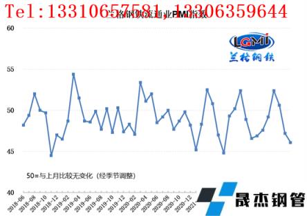 云商平臺統(tǒng)計(jì)發(fā)布的2022年6月份厚壁無縫鋼管流通業(yè)PMI總指數(shù)為46.1%,比上月下降1.1個百分點(diǎn),在收縮區(qū)間內(nèi)持續(xù)下滑。從分類指數(shù)看,構(gòu)成厚壁無縫鋼管流通業(yè)