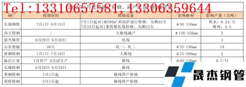 表1:6月份優(yōu)特無縫鋼管廠家檢修、減產(chǎn)匯總