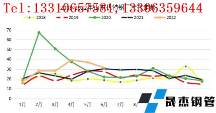 1-6月份我國優(yōu)特鋼產(chǎn)量小幅下降。據(jù)網(wǎng)對樣本企業(yè)統(tǒng)計,2022年1-6月,國內(nèi)優(yōu)特鋼累計產(chǎn)量1223.87萬噸,與去年同期的1590.89萬噸,減少367.02萬噸。前期疫情影響原料運輸不暢,無縫鋼管廠家被迫減產(chǎn),后期因需求不濟、虧損加大導致主動減產(chǎn),預計7-8月份無縫鋼管廠家減產(chǎn)力度還將擴大,來緩解供需矛盾。