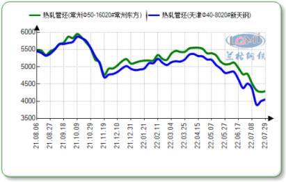 7月末,北方地區(qū)無縫鋼管廠家20#熱軋管坯出廠報價4050-4240元,20#連鑄出廠報價3940-4150元;南方地區(qū)20#熱軋出廠報價4240-4570元,北方新天鋼、南方東方兩家無縫鋼管廠家熱軋管坯價差維持在190元左右,較7月中旬相比兩者價差有所收窄。受美聯(lián)儲加息預(yù)期及國內(nèi)需求持續(xù)低迷影響,管坯價格大幅下跌,北方地區(qū)熱軋管坯價格跌至3970元,創(chuàng)近一年以來的新低,不過在7月27日筑底后管坯價格呈現(xiàn)小幅上揚(yáng)走勢。