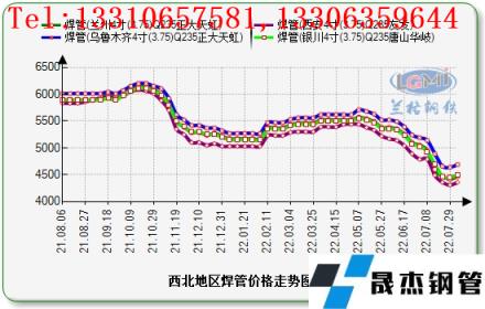 7月份(7.01-7.29),西北地區(qū)焊管鍍鋅管價格跌幅繼續(xù)擴大。云商平臺監(jiān)測數(shù)據(jù)顯示,截至2022年7月29日,焊管方面:西安地區(qū)4寸(3.75mm)焊管價格為4840元(噸價,下同)比上月同期降530元,蘭州地區(qū)4寸(3.75mm)焊管價格為4400-4420元比上月同期降370元,銀川地區(qū)4寸(3.75mm)焊管價格為4430-4450元比上月同期降580元,烏魯木齊地區(qū)4寸(3.75mm)焊管價格為4560-4640元比上月同期降550元。鍍鋅管方面:西安地區(qū)4寸(3.75mm)鍍鋅管價格為5060-5350元比上月同期降350-540元;蘭州地區(qū)4寸(3.75mm)鍍鋅管價格為5180-5240元比上月同期降610元;銀川地區(qū)4寸(3.75mm)焊管價格為5160-5220元比上月同期降580元;烏魯木齊地區(qū)4寸(3.75mm)焊管價格為5360-5440元比上月同期降560元。